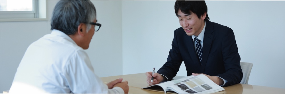定期的に得意先を訪問し、ヒアリングや打合せを行います。時には施工現場に赴いてアフターフォローをしたり、仕入先の営業担当と同行したりすることもあります。