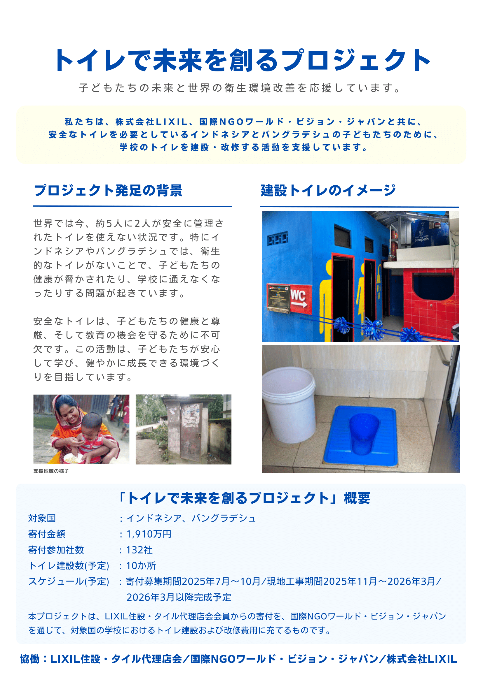 この度、LIXIL住設・タイル代理店会会員として「トイレで未来を創るプロジェクト」に協賛しました。